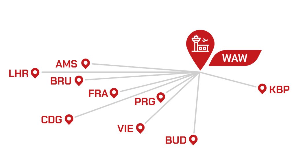 • Połączenia Road Feeder Services – łączymy WAW z kluczowymi europejskimi lotniskami